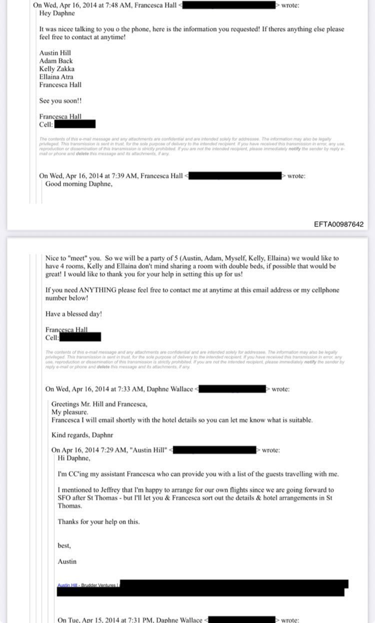注目すべきことに、ヒル氏とバック氏の両方は、その後エプスタイン氏の島の拠点であるセント・トーマスに宛てた旅行調整メールにも含まれていた。