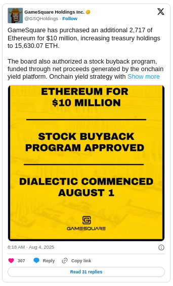 スポット交換データは格差を強化します。 8月30日、ETHは純流出で1,280万ドルを記録しました。同時に、制度的ステーキングは構造的需要を追加しました。現在、イーサリアムの供給のほぼ30%が杭打ちされており、明確行為に続いて176億ドルの企業配分があります。