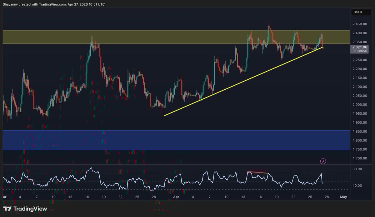 4月が終わりに近づくにつれてイーサリアムは230,000ドルを超えて取引されており、イライラするほど見慣れた状況で月が終わりました。 3月中旬以来、明確な解決策がないまま繰り返し試してきた同じ240万ドルのレジスタンスゾーンに迫っている。 $ETH ここ数カ月で最も大幅なブレイクアウトとなるか、あるいはまた新たな拒否反応が起きるかの瀬戸際にある。