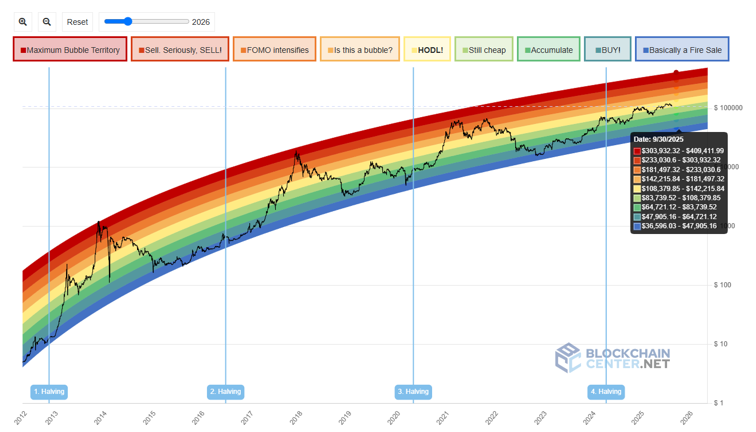ビットコインレインボーチャートは、2025年9月30日のBTC価格を予測しています