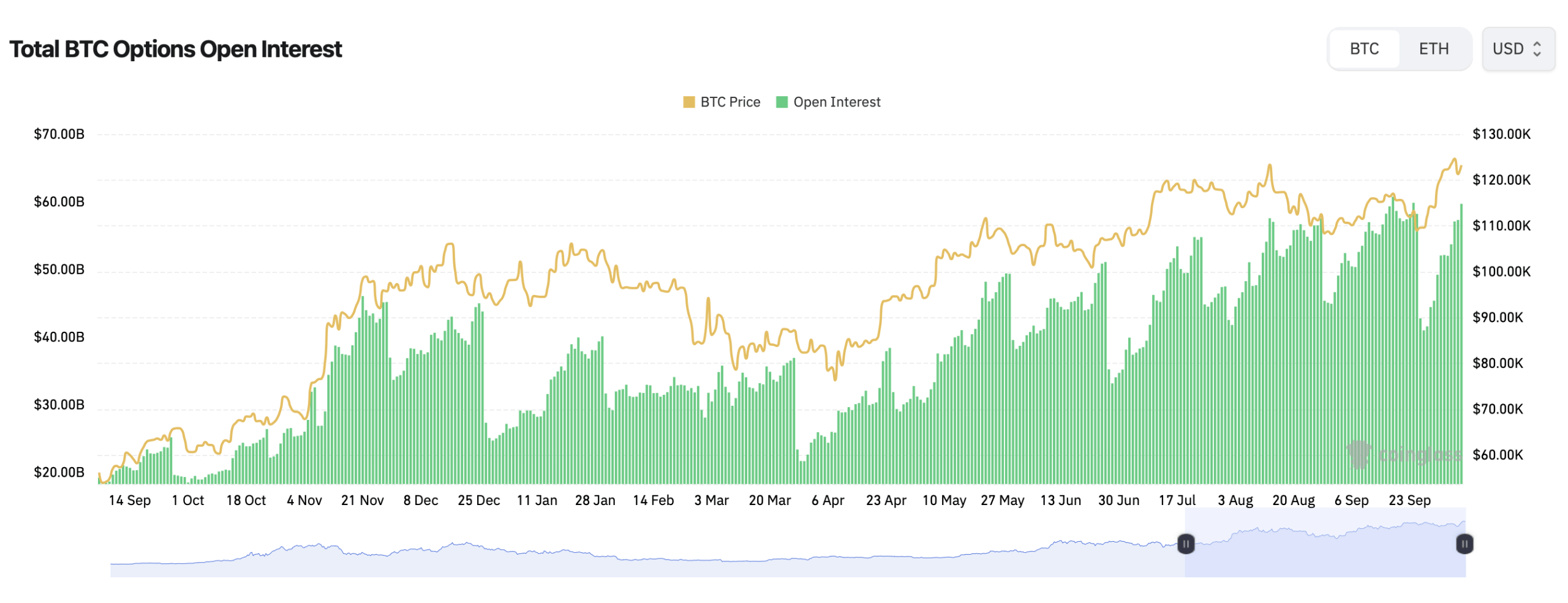 2025 年 10 月 9 日の Coinglass 経由のビットコイン オプションの建玉。