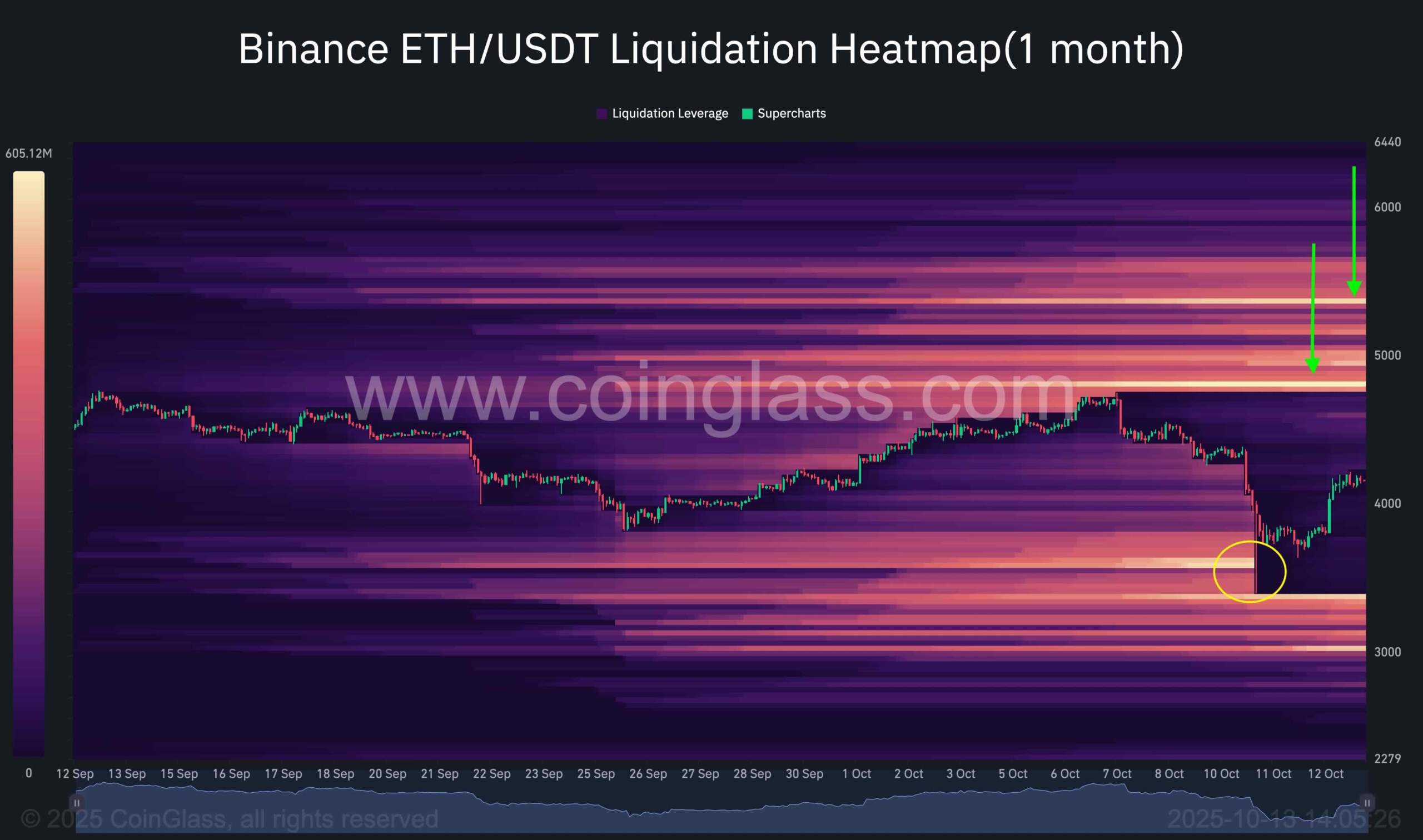 対照的に、現在では複数の高密度流動性クラスターが価格を超えて発展しており、最も顕著なのは 480 万ドルから 5000 ドル付近、そして再び 580 万ドルから 600 ドル付近です。これらのゾーンはショートサイドの流動性ポケットと未実現のショートエクスポージャーに対応しており、将来の潜在的な上昇のターゲットとして効果的に機能します。