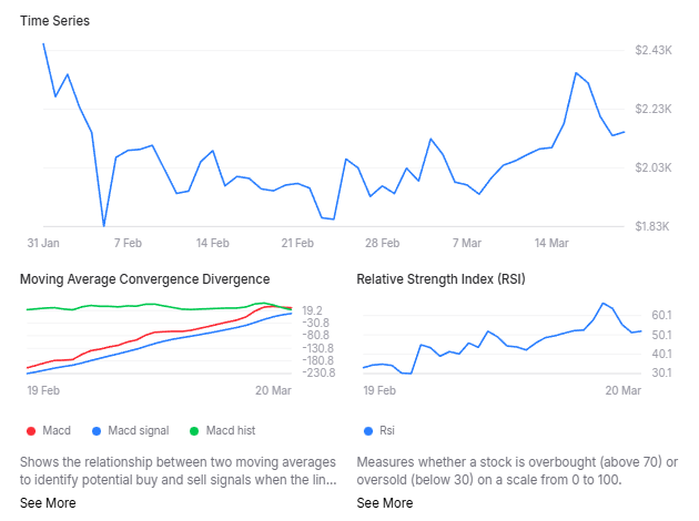 注目すべきは、Finbold の AI 予測エージェントが平均値を生成したことです。 $ETH 2026 年 4 月 1 日の価格は 2,153 ドルで、デジタル通貨が現在 2,242 ドルで取引を行っていることを考慮すると、-3.54% の下値となります。