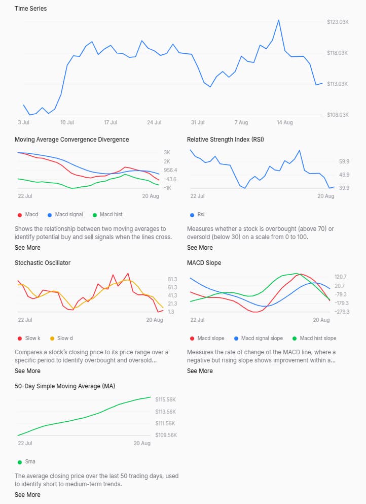 9月1日のBTC価格目標を設定するために、FinboldのAI予測エージェントは複数のLLMSを使用して、運動量ベースのインジケーターをそのコンテキストに組み込みながら、精度を改善するための平均予測を生成しました。