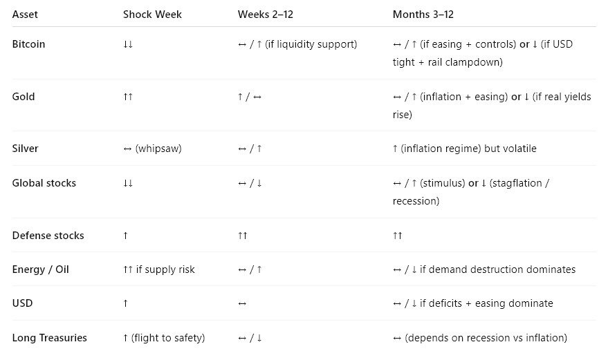 戦争シナリオでは、きれいな物語が報われるわけではありません。市場は通常、同時に 2 つのことを行います。彼らは安全な場所へ全力疾走し、最初の衝撃が去った後に世界の価格を再設定します。ビットコインはまさにその断層線上に位置しています。