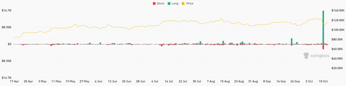 CoinGlassのデータによると、金曜日には167億ドルの長期清算と24億5,600万ドルの短期清算が発生し、仮想通貨史上最大の清算イベントとなった。