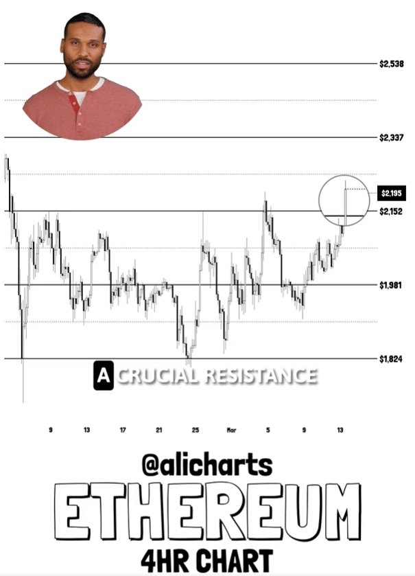 暗号アナリストのアリ・マルティネス氏 注目した イーサリアムは、以前は上昇の試みを制限していたゾーンである2,152ドルの抵抗レベルを無事にクリアした後、強気のブレイクアウトを確認したと述べています。同氏の分析によれば、この動きは市場構造の明らかな変化を示しており、現在は買い手が主導権を握っているという。