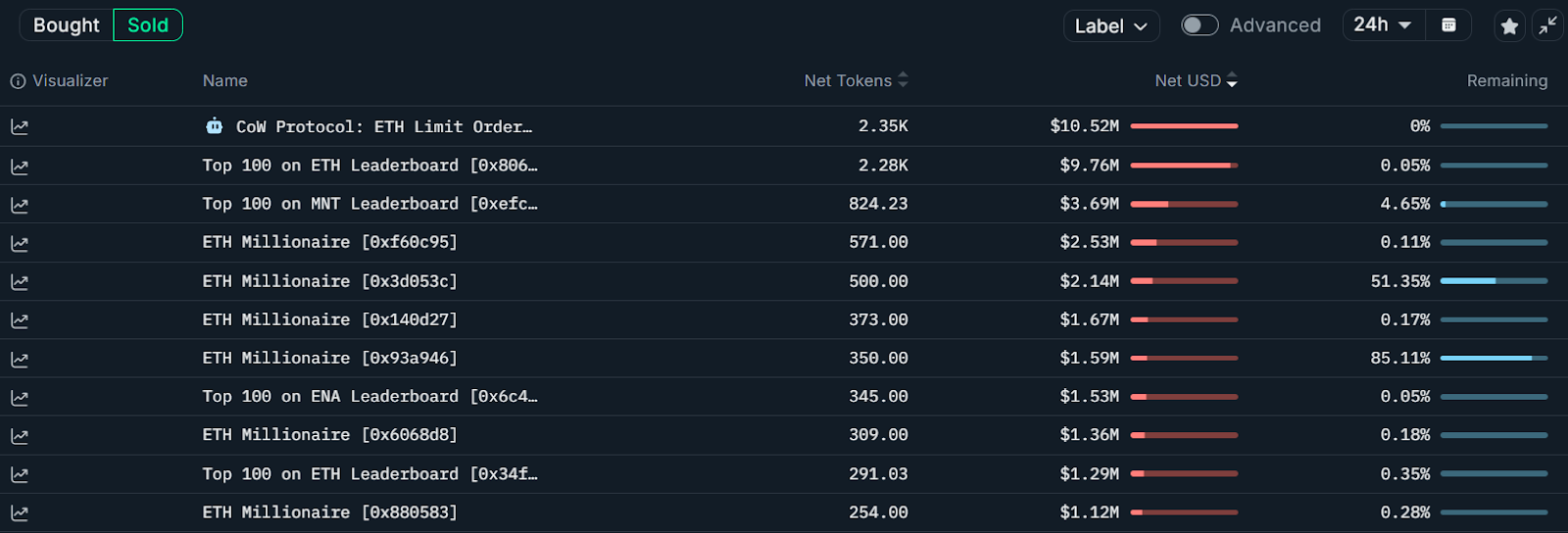 月曜日に、Nansenが追跡したトップ100のエーテルトレーダーの1つである「0x806」というラベルが付けられたウォレットは、ナンセンのデータからのデータからのデータである970万ドル以上のエーテル(過去24時間の2番目に大きいエーテル販売)を販売しました。