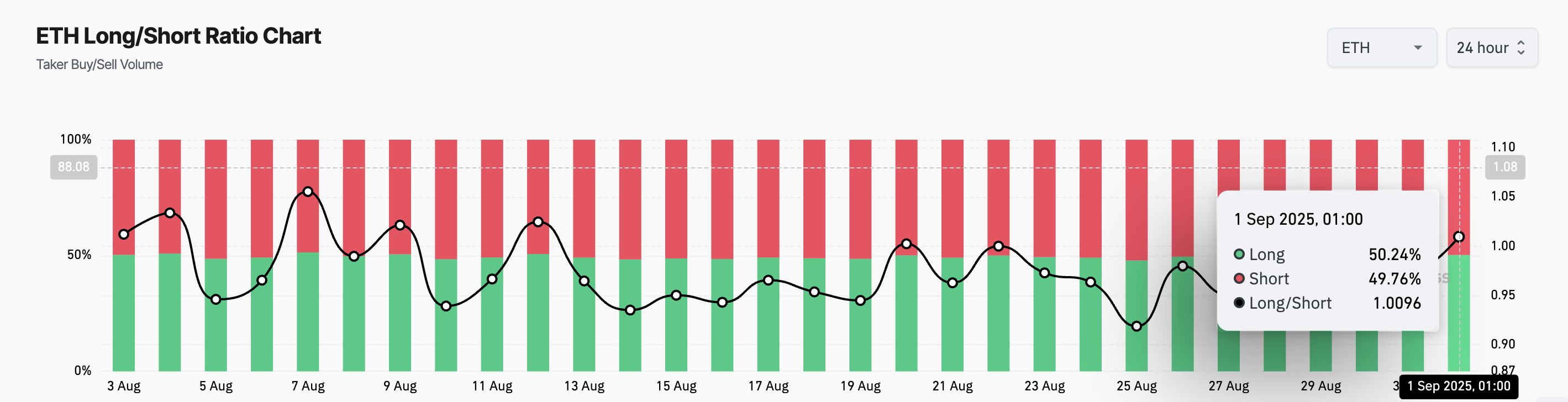 ETHロング/ショート比。出典:GlassNode