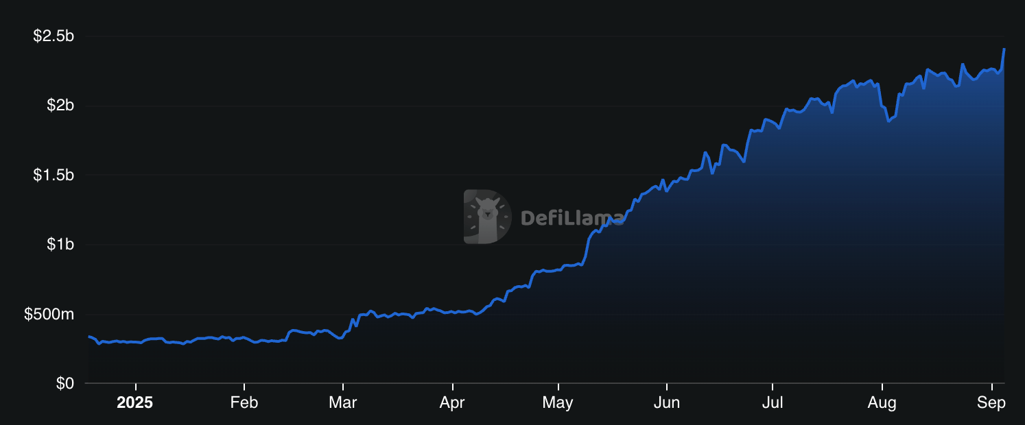2021年に発売されたMapleは、2025年に強い勢いを記録しました。Defillamaのデータによると、TVLは現在の2億9,800万ドルから約22億ドルに急増しています。