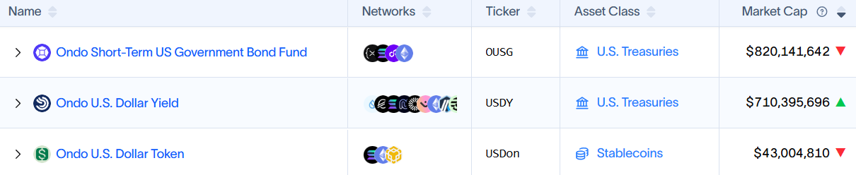 Ondo Finance の時価総額トップのトークン化商品。出典: RWAxyz
